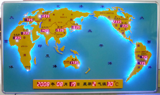 本系列世界時(shí)間地圖屏的功能與適用場(chǎng)合類似于大堂世界時(shí)間地圖屏,其特點(diǎn)是所有的地圖板塊固定在一塊完整的亞克力底板上,然后將整塊世界時(shí)間地圖屏掛到墻上即可,安裝甚為簡單,用戶可以自行懸掛,無需廠家派人協(xié)助。
