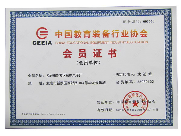 祝賀智電已成為中國(guó)教育裝備行業(yè)協(xié)會(huì)會(huì)員